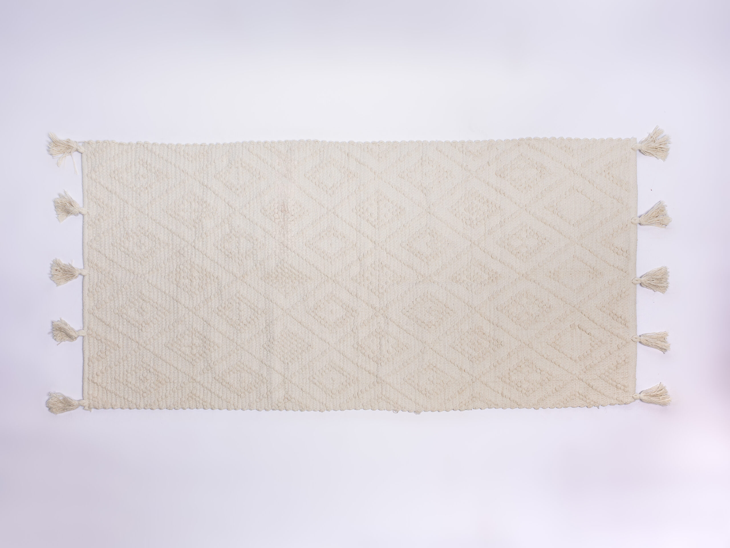 100% cotton handwoven kilim rug with tribal-inspired geometric patterns and fringed edges. Lightweight, soft, and artisan-made in Egypt.